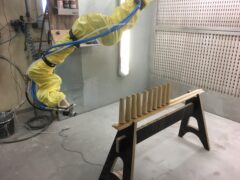 Projekti eesmärk oli leida viis, kuidas mööblidetaile roboti abil viimistleda, valmistada selleks vajalikud abivahendid ja rakised ning läbi viia vajalikud katsetused. Katsetused viidi läbi TSENTRI viimistluskabiinis koostöörobotiga UR10e, mis kinnitati viimistluskambri lakke 45-kraadise nurga alla. Viimistlemiseks kasutati kõrgsurve pumpa Graco Merkur Air-Assisted ja vesialuselist viimistlusmaterjali.